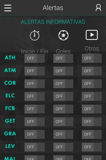 Otra función que te será de gran utilidad es el apartado de notificaciones, avisos que puedes activar en cualquier momento y que sirven para saber cuándo empieza o termina el encuentro de tu equipo, o si ha habido gol o tarjeta.